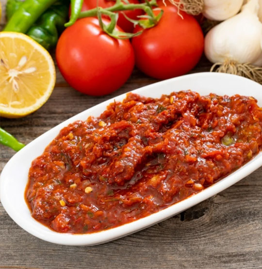 Acılı Ezme, en çok talep gören mezelerimizdendir. Günlük ve taze olarak hazırlanmaktadır