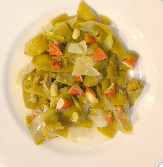 Datça usulü hazırlanan zeytinyağlı bademli taze fasulyemiz