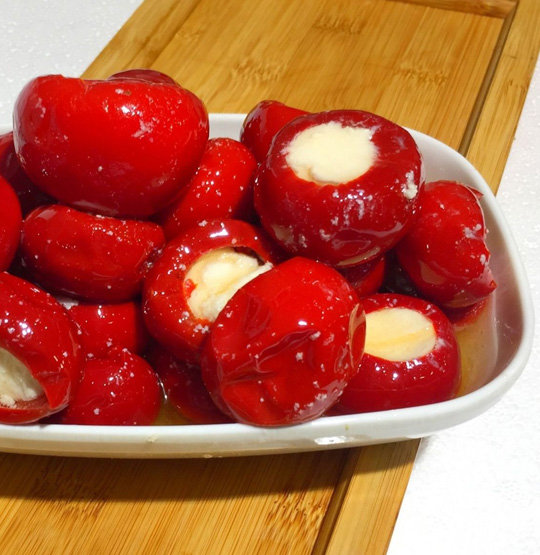Tatlı kiraz biber turşu içerisi peynir ile doldurulmuştur.